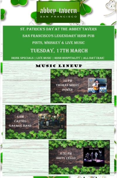 The Abbey Tavern, a San Francisco Richmond district neighborhood favorite Irish Pub and Sports bar, has been serving local Guinness drinkers some of "San Francisco's Best Pints" since 1997. The Abbey Tavern is a conversationalist's bar, where great live music can be heard, and the best hops and barley on tap in San Francisco are on offer.